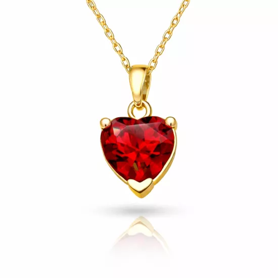 Gümüş Gold Kırmızı Taşlı Kalpli Kadın Kolye