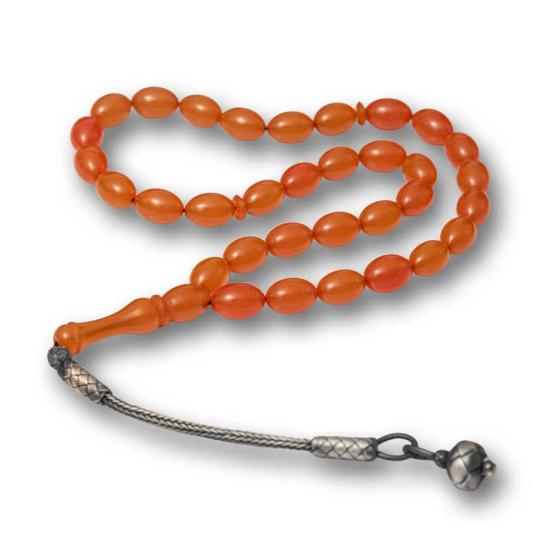 İSTANBUL GÜMÜŞ Gümüş Kazaz Püsküllü Sıkma Kehribar Tesbih