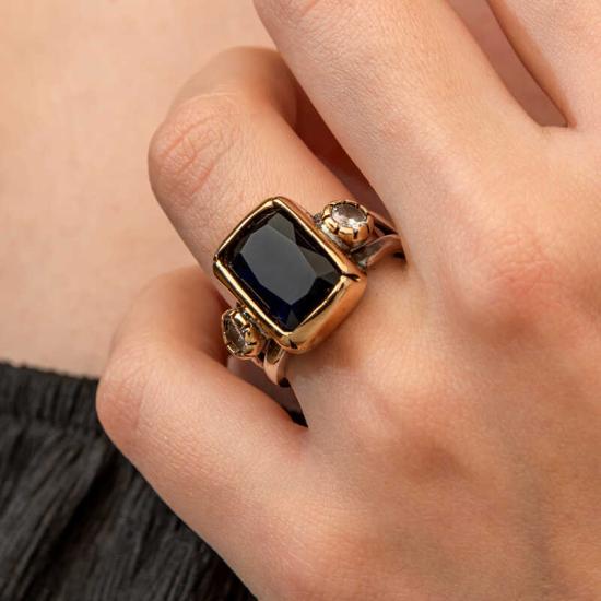 Gümüş Koyu Lacivert Zirkon Taşlı Otantik Kadın Yüzük