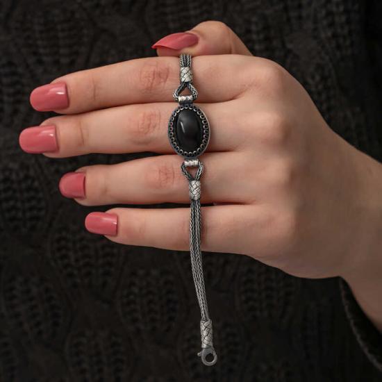 Gümüş Oniks Taşlı Kazaziye Bileklik