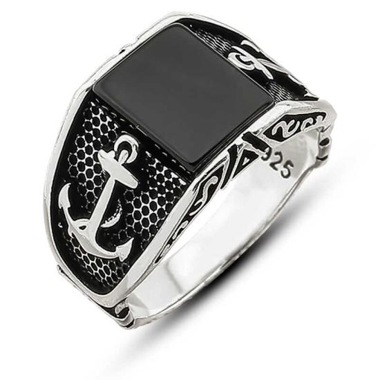 Gümüş Oniks Taşlı Çapa Erkek Yüzük