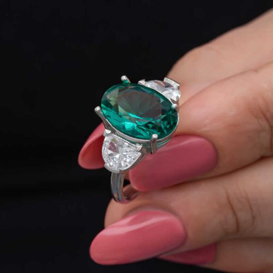 Gümüş Yeşil Renk Paraiba Taşlı Kadın Yüzük