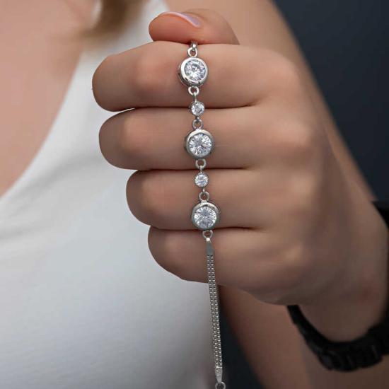 Gümüş Yuvarlak Taşlı Kadın Bileklik